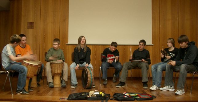 Kurse an Schulen finden ergänzend zum Musikunterricht statt. Sie können in Form einer AG stattfinden oder direkt in den Unterricht eingebunden werden. Das spezielle Angebot unterstützt vermehrt den offenen Ganztagsbereich.