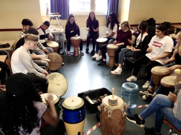 • Gemeinsames Erarbeiten und Gestalten von überschaubaren Trommelstücken
